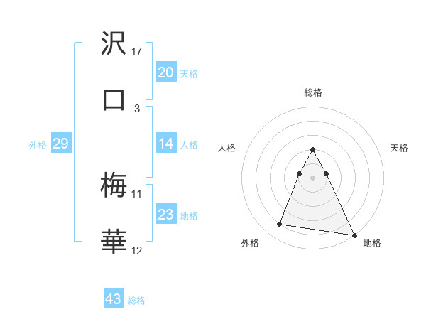 沢口 梅華さんを姓名の画数から五運を鑑定