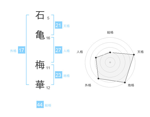 石亀 梅華さんを姓名の画数から五運を鑑定