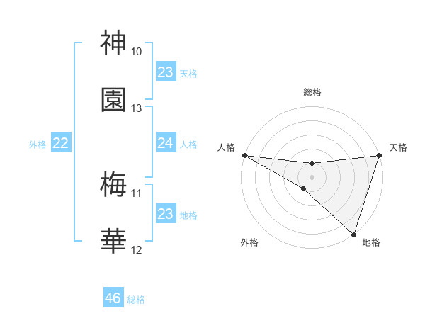 神園 梅華さんの天格は23画の5点!