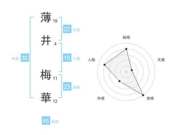 薄井 梅華さんの総格は45画の4点!