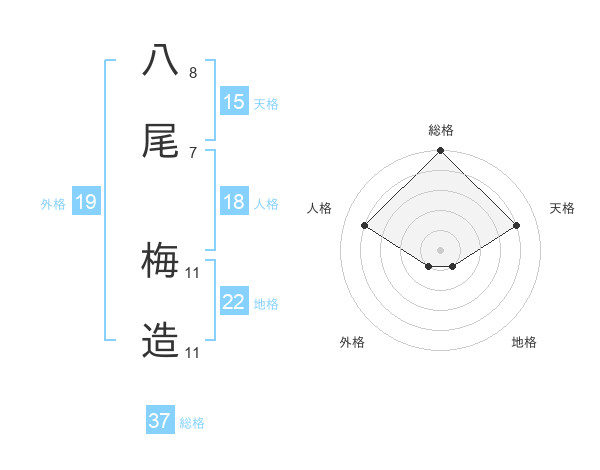 八尾 梅造さんの総格は37画の5点!