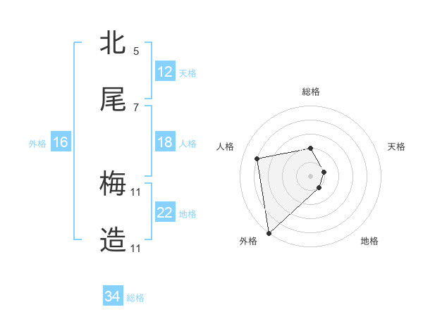 北尾 梅造さんを姓名の画数から五運を鑑定