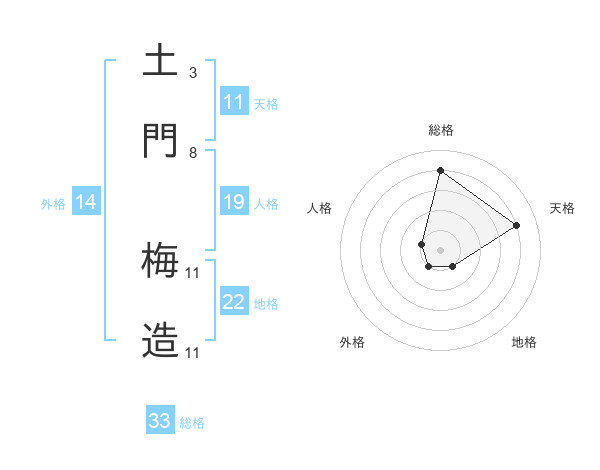 土門 梅造さんの総格は33画の4点!