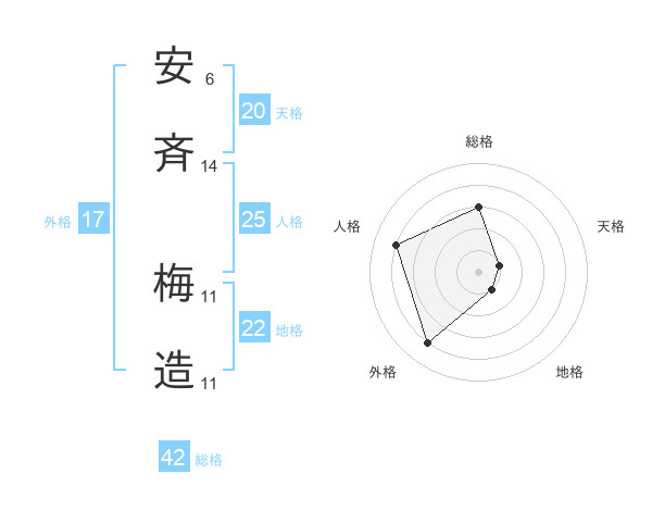 安斉 梅造さんを姓名の画数から五運を鑑定