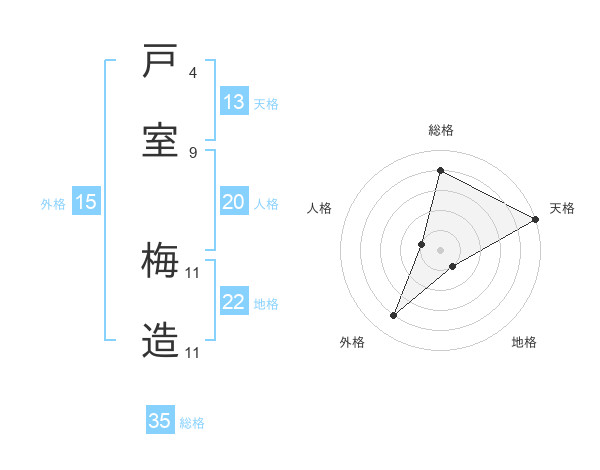 戸室 梅造さんを姓名の画数から五運を鑑定
