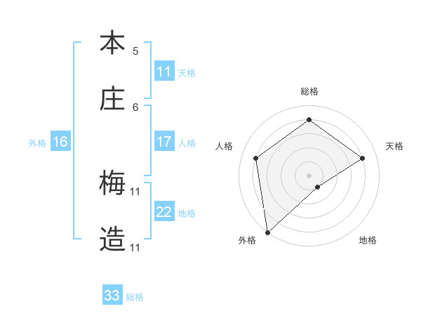 本庄 梅造さんの総格は33画の4点!