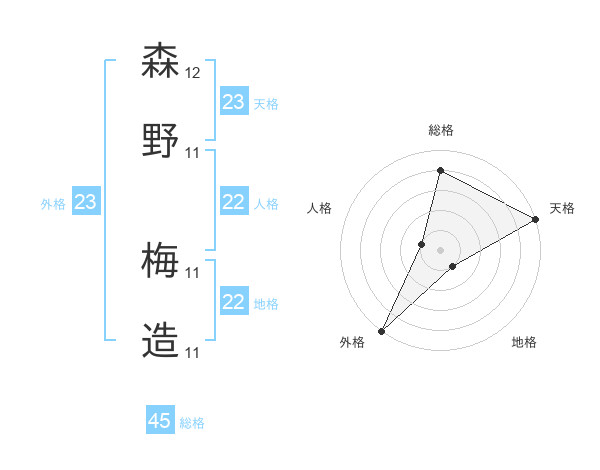 森野 梅造さんの総格は45画の4点!