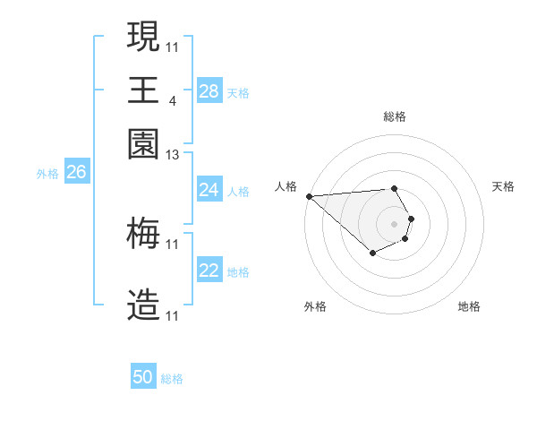 現王園 梅造さんを姓名の画数から五運を鑑定