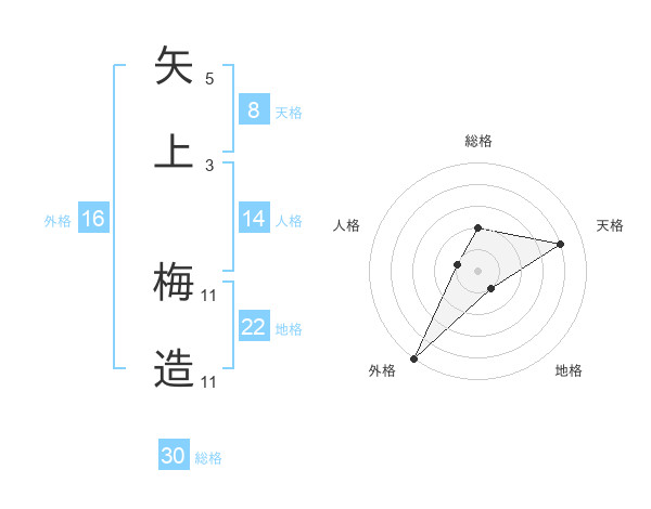 矢上 梅造さんの総格は30画の2点!