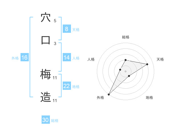 穴口 梅造さんを姓名の画数から五運を鑑定