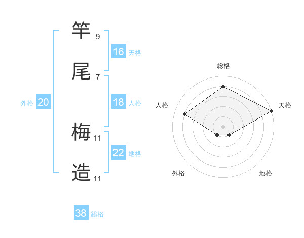 竿尾 梅造さんを姓名の画数から五運を鑑定