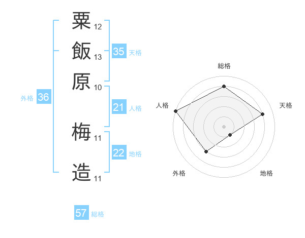 粟飯原 梅造さんを姓名の画数から五運を鑑定