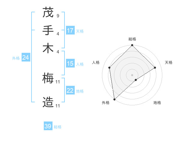 茂手木 梅造さんを姓名の画数から五運を鑑定