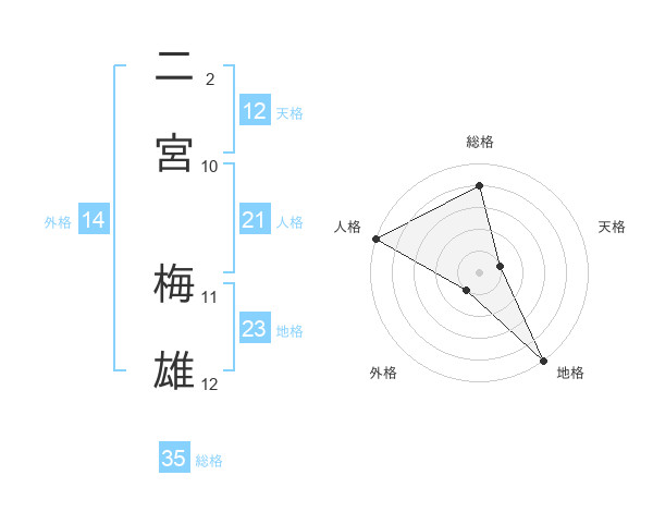 二宮 梅雄さんの総格は35画の4点!