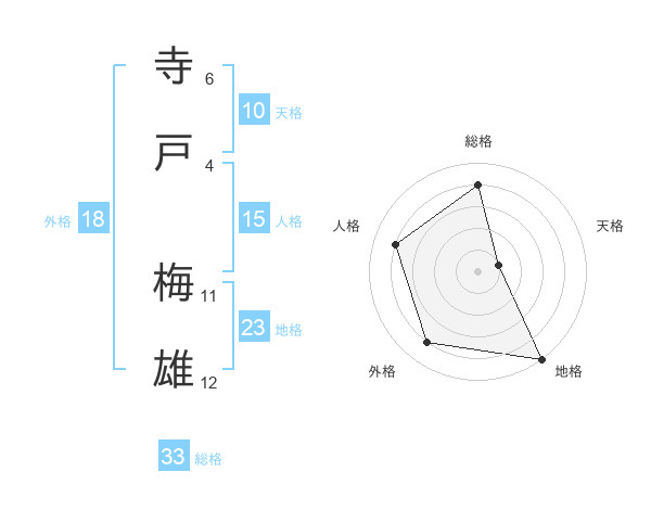 寺戸 梅雄さんの地格は23画の5点!