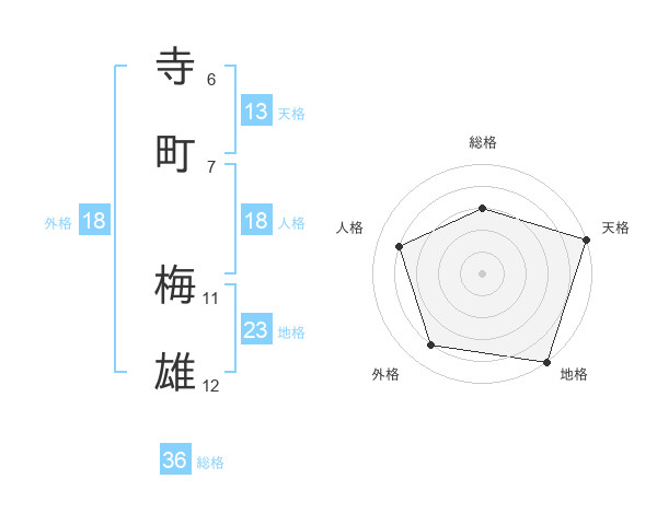 寺町 梅雄さんを姓名の画数から五運を鑑定