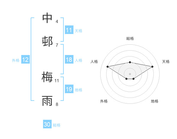 中邨 梅雨さんの総格は30画の2点!