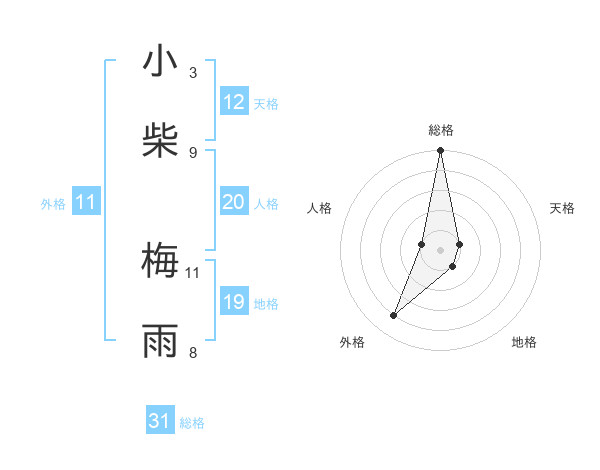 小柴 梅雨さんの天格は12画の1点!