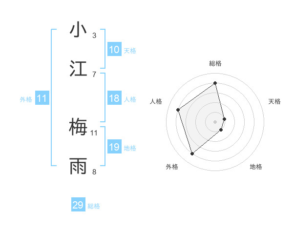 小江 梅雨さんを姓名の画数から五運を鑑定