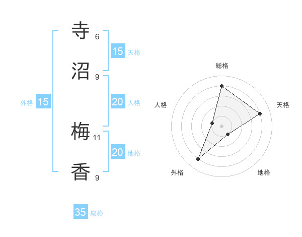 寺沼 梅香さんの外格は15画の4点!