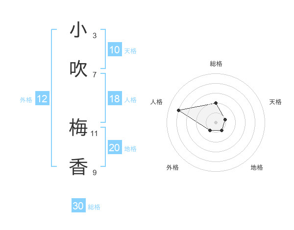 小吹 梅香さんを姓名の画数から五運を鑑定