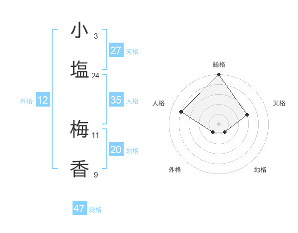 小塩 梅香さんを姓名の画数から五運を鑑定