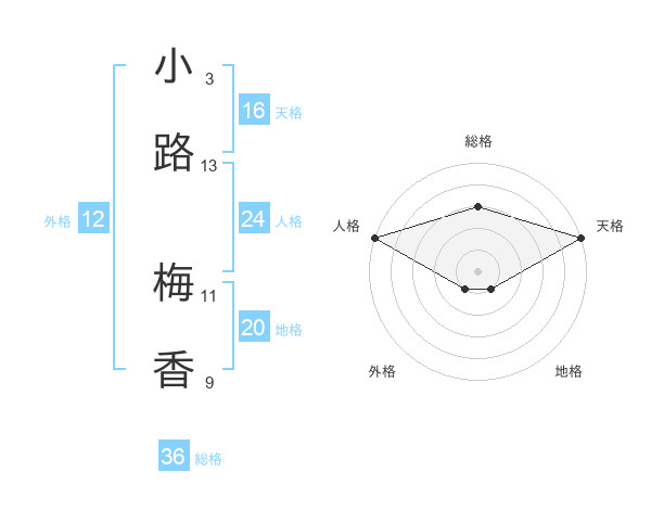 小路 梅香さんの天格は16画の5点!