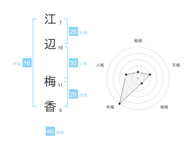 江辺 梅香さんを姓名の画数から五運を鑑定