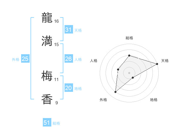 龍満 梅香さんの総格は51画の3点!