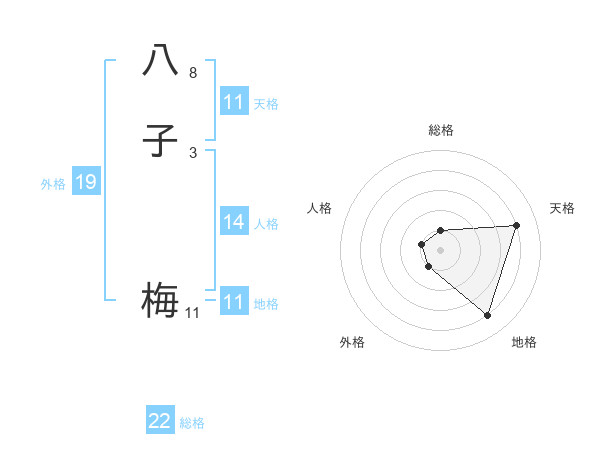 八子 梅さんの総格は22画の1点!