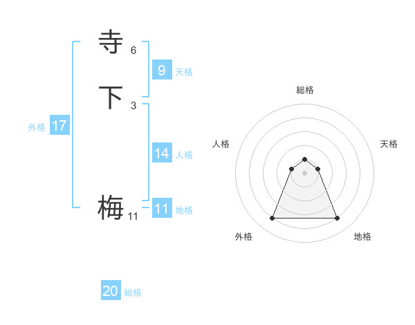 寺下 梅さんの総格は20画の1点!