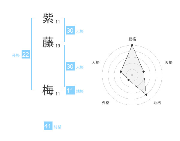 紫藤 梅さんの総格は41画の5点!