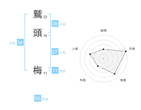 鷲頭 梅さんの総格は50画の2点!