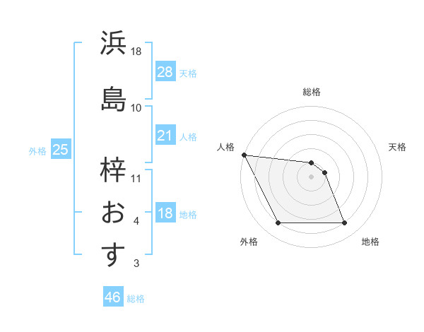 浜島 梓おすさんの外格は25画の4点!