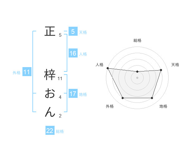 正 梓おんさんの天格は5画の4点!