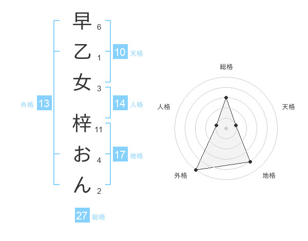 早乙女 梓おんさんを姓名の画数から五運を鑑定