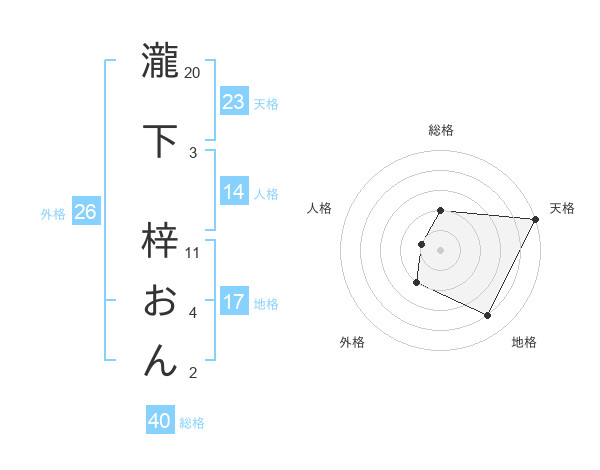 瀧下 梓おんさんを姓名の画数から五運を鑑定