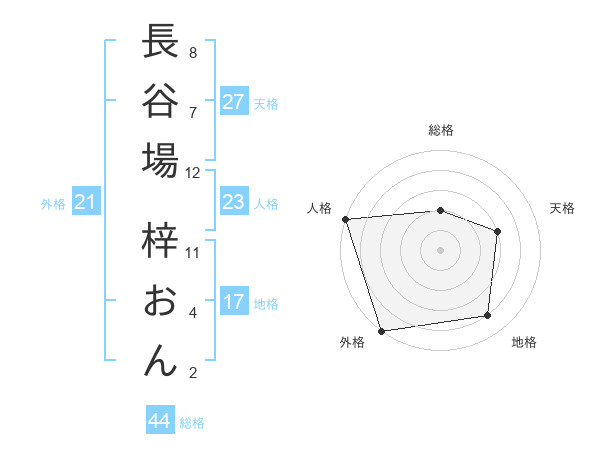 長谷場 梓おんさんを姓名の画数から五運を鑑定
