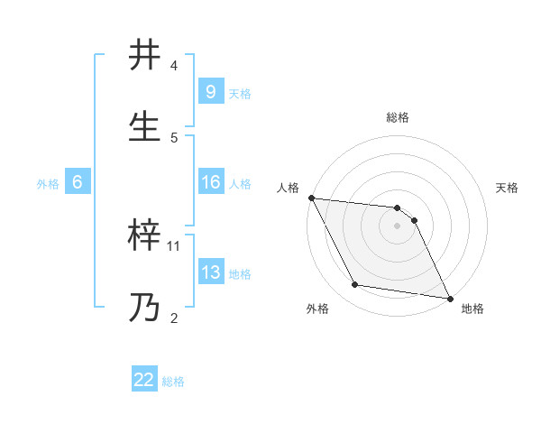 井生 梓乃さんを姓名の画数から五運を鑑定