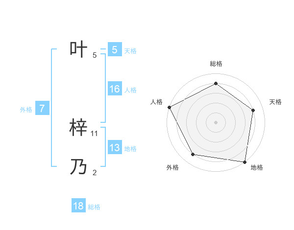 叶 梓乃さんを姓名の画数から五運を鑑定