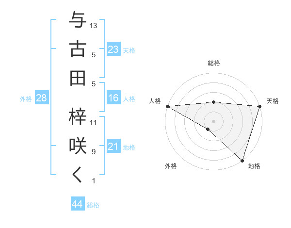 与古田 梓咲くさんを姓名の画数から五運を鑑定