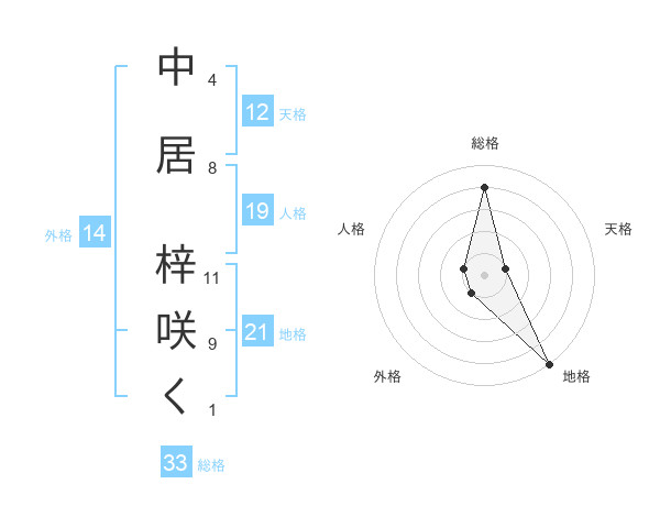 中居 梓咲くさんを姓名の画数から五運を鑑定