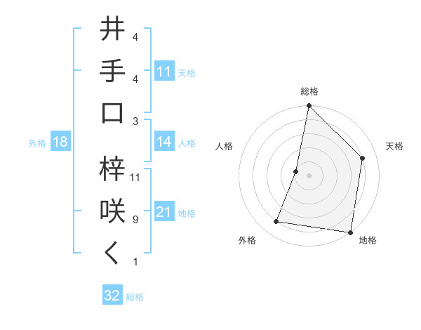 井手口 梓咲くさんを姓名の画数から五運を鑑定