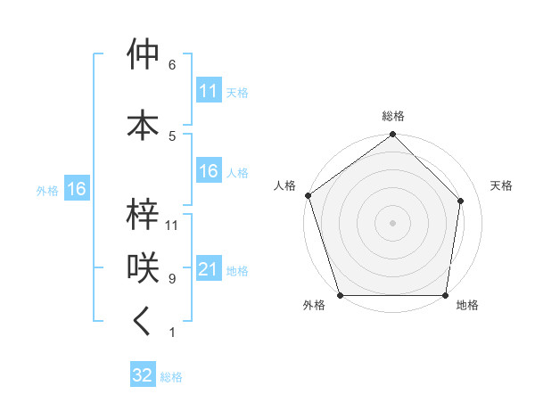 仲本 梓咲くさんを姓名の画数から五運を鑑定