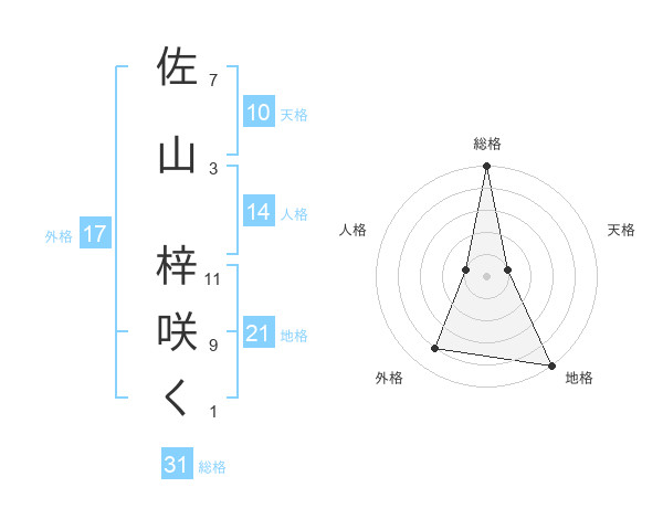 佐山 梓咲くさんの総格は31画の5点!