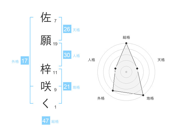 佐願 梓咲くさんの総格は47画の5点!