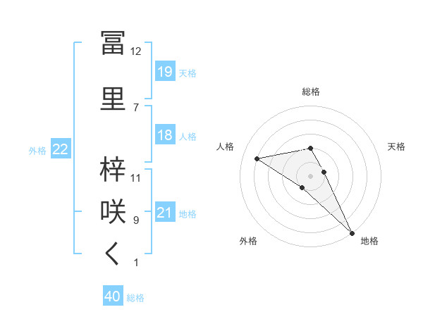冨里 梓咲くさんを姓名の画数から五運を鑑定