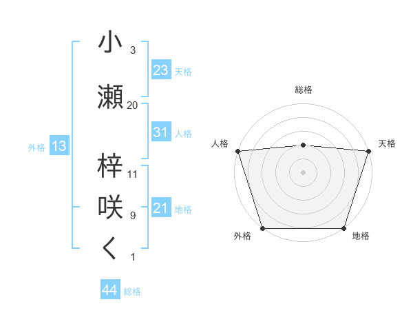 小瀬 梓咲くさんの天格は23画の5点!