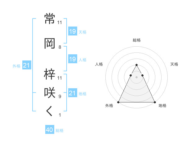 常岡 梓咲くさんを姓名の画数から五運を鑑定