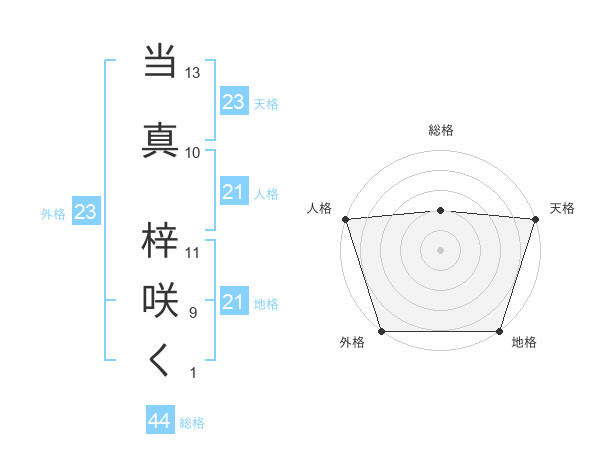 当真 梓咲くさんを姓名の画数から五運を鑑定